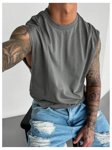 HOT ! SweatyRocks Men's Solid Color Round Neck Gym Tank Top Sleeveless Workout Shirts