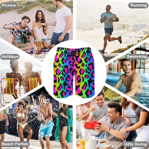 • Applicable Occasions: Perfect for both leisure and athletic activities, these Rainbow Leopard Bright Print swim shorts are suitable for home wear, swimming, beach vacations, running, and more, offering versatility in mens swimsuit options