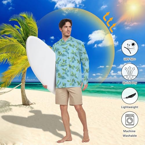 Wudan Art Basil Blue Mens Hoodies Shirts Long Sleeve Sailing Shirts Swim Shirt UPF 50+ S 4