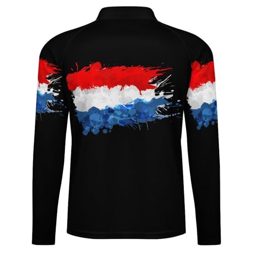 HOT ! Flag of Netherlands Splashes Men's Rash Guard Long Sleeves Quick Dry Fishing Workout Shirts with Zipper