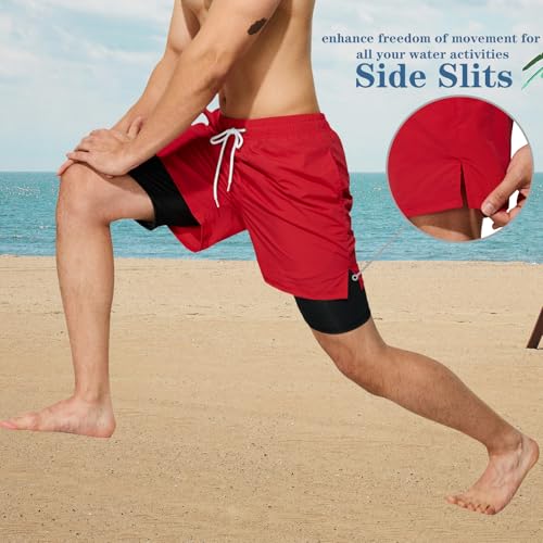 Mens Swim Trunks with Compression Liner 5 inch Inseam Quick Dry Bathing Suit 2 in 1 Board Shorts 6