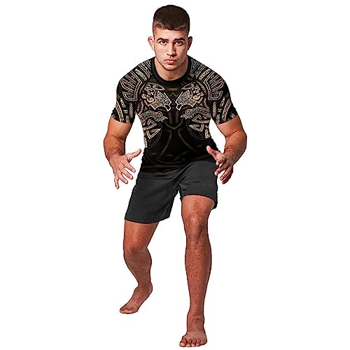 More information about Viking Rash Guard Short Sleeve Baselayer Skins Performance Fit Compression Shirt MMA BJJ Print 3D Never Fade