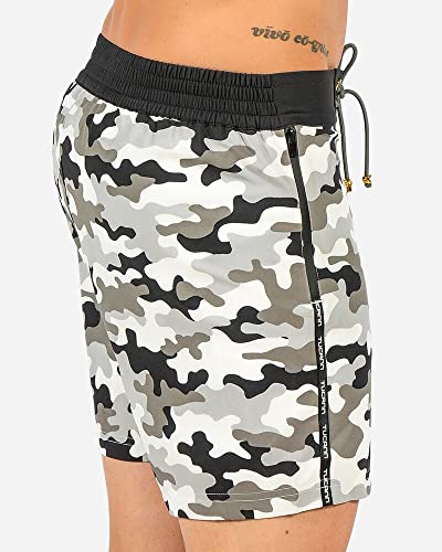 HOT ! White Camo Swim Trunks - 5", Quick Dry, 4 Way Stretch, Chlorine Resistant, Built in Compression Liner