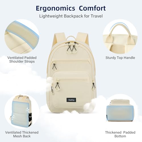 HOT ! Carry On Travel Backpack For Women, 18 Inch Water Resistant Large Backpack Lightweight Bookbag For Men, 8x14x18 Personal Item Bag Casual Daypack Backpacks For Work Office Commuter (Offwhite)