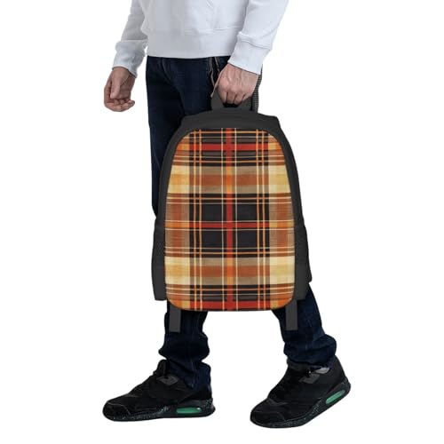 Fall Orange Plaids Backbags Large Adjustable Backpack Lightweight Daypack for Men Women 16.5 Inches 1