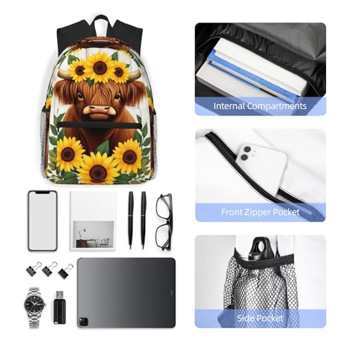 HOT ! Big Capacity Anti-Theft Multipurpose Shoulder Bag for Travel Sport, Highland Cow Sunflower Bags, Daypack Backpack Durable Rucksack for Gym Outdoors Running