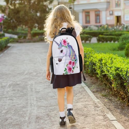 Supdreamc Men Women Polyester Unicorn Portrait Watercolor Style Floral Art Daypack Big Capacity Shoulder Bag With Smooth Zippers for Hiking Work Walking Cycling 2