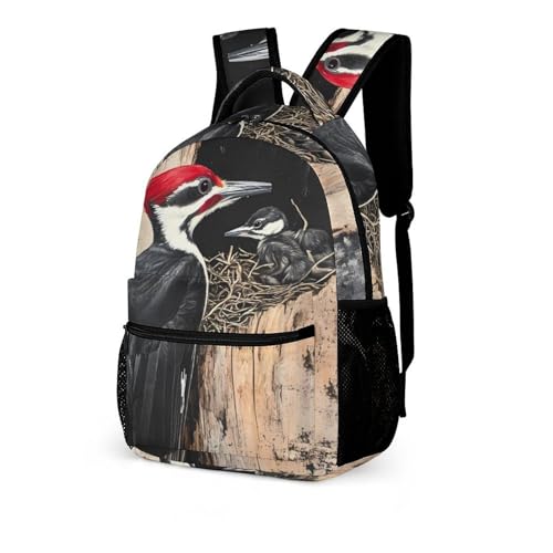 HOT ! Pileated Woodpecker Travel Backpack Casual Daypack Shoulder Bag with Adjustable Shoulder Straps