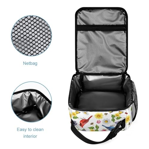 Backpack with Lunch Box & Cosmetic Bag Set Flowers Birds Bookbag Daypack Set Backpack with Lunch Bag Storage Bags 7
