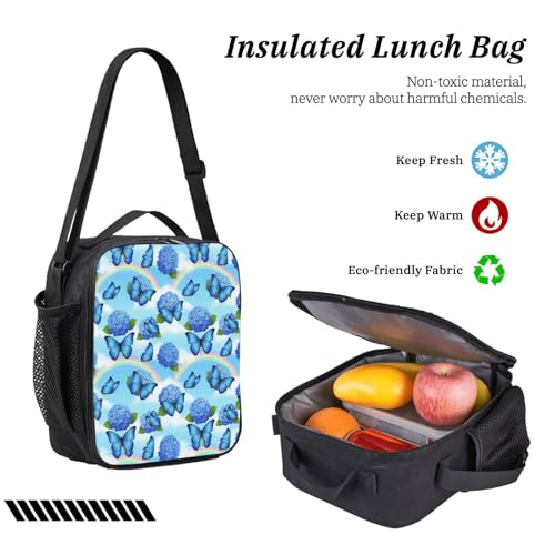 Backpack For Unisex With Lunch Box Pencil Case (for Blue Butterflies Rainbow) 4