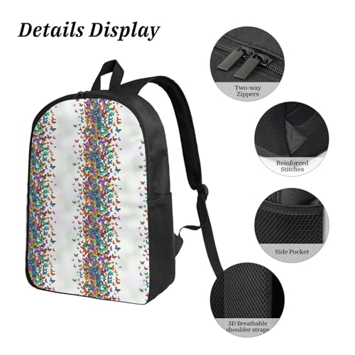 Backpack 3 Pcs Set With Lunch Box Pencil Case Lightweight 3 In 1 For Unisex (for Colorful Butterflies) 7