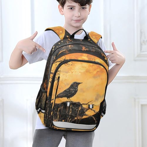 little kids backpacks 8-12: adjustable bookbags for teen girls in assorted colors - Halloween Crows Yellow Moon Black 1