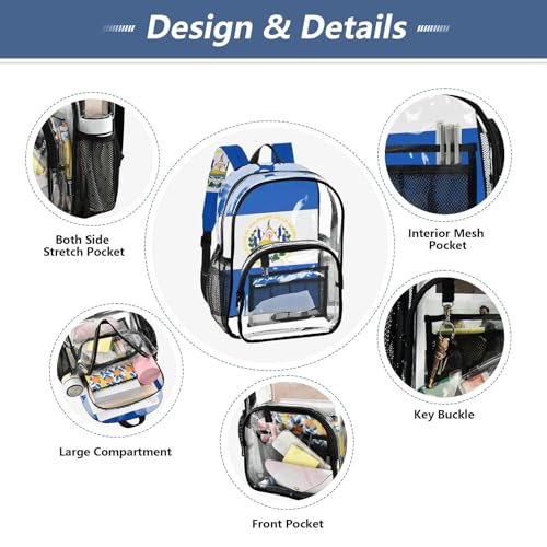 Clear Bag for Women Travel El Salvador Flag Girls Backpack Kids Boys Approved See through Bag 4