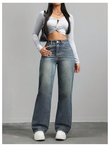 SOLY HUX Women's Retro Straight Leg Jeans High Waisted Y2K Baggy Boyfriend Denim Pants Streetwear 1