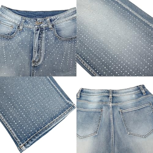 More information about Womens Rhinestone Jeans Baggy High Waisted Wide Straight Leg Y2K Bling Sparkly Glitter Denim Pants Streetwear