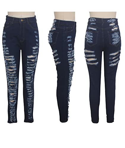 More information about Sexyshine Women's High Waisted Skinny Ripped Jeans Stretch Destroyed Hole Denim Pants Hollow Out Long Pencil Jeans