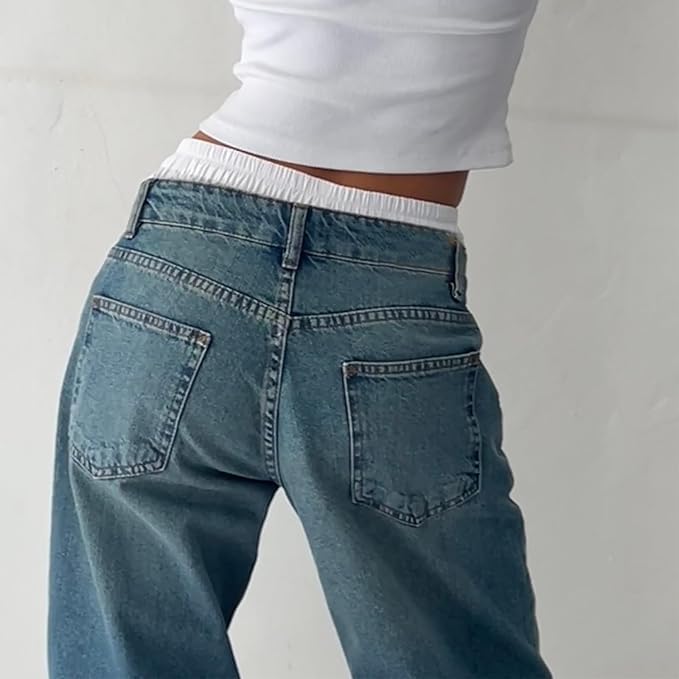 Womens Baggy Jeans,Women Y2K Low Rise Baggy Jeans,Straight Wide Leg Boyfriend Streetwear Loose Fit Denim Pants 2