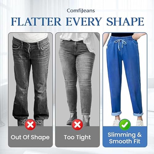 HOT ! ComfiJeans - High Waist Ultra-Stretch Mom Jeans, Lightweight Stretch Pants, Drawstring Elastic Waist Jeans