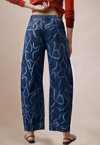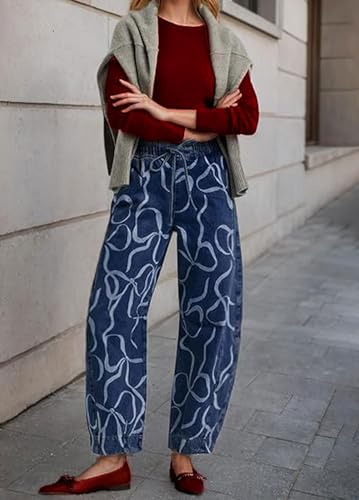 • Vintage Floral Print Barrel Jeans Denim Ankle Pants Style: This striped print pants jeans long trousers are made of soft cotton blend material, the printed barrel jeans feature a elastic waist pull on jeans closure, offers a casual and loose appearance, keep you lightweight, casual, chic looking in spring summer and fall winter. The mid rise baggy jeans are suitable for streetwear, daily wear, vacation and other going out outwear occasions