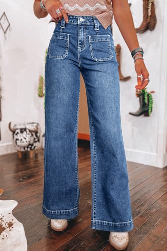 HOT ! Women's High Waisted Straight Leg Jeans Stretchy Wide Leg Denim Pants with Front Pockets 2024 Trendy