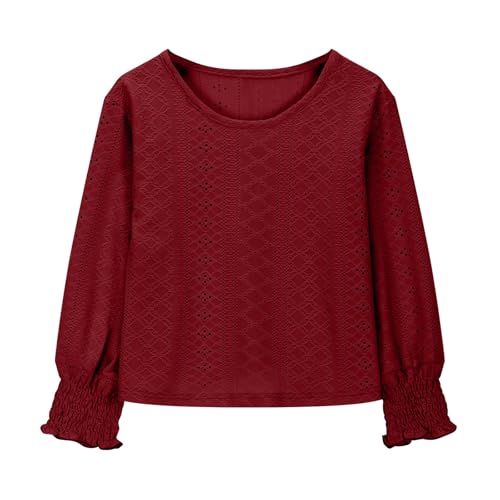 Long Sleeve Eyelet Tops for Girls Dressy Casual Crewneck Shirts Hollow Out Crochet Lace Blouses Fall Fashion Clothes 6-15T 6