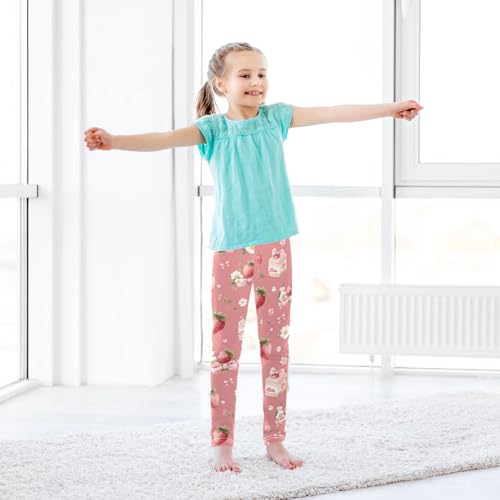 Strawberry Cake Bow Girls Leggings Ultra Soft Compression Yoga Gym Pants for Kids 4-10T 5