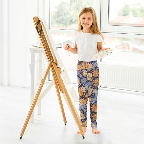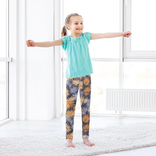 Yellow Blue Palm Leaves Girls Leggings Soft Stretch Workout Yoga Dance Pants for Kids Casual Tights 6