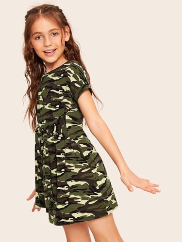 WDIRARA Girl's Camo Print Tie Front Round Neck Short Sleeve T Shirt Dress 4