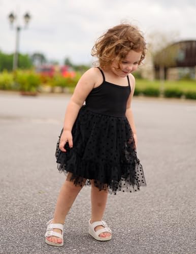• Little Girls Casual Dress: Spaghetti straps, pleated tulle skirt, ruffle hem, elastic waist, and knee-length style make your baby girls so sweet and cute.