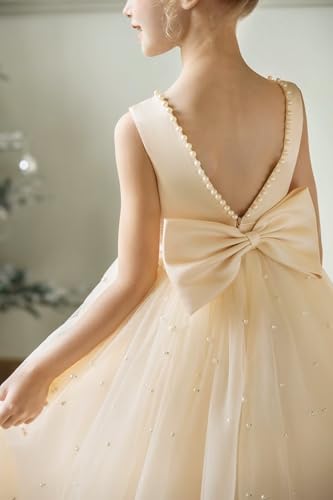 JISISANG Flower Girl Tulle Tutu Dress for Kids Wedding Girl First Communion Pageant Dresses Princess Prom Ball Gowns with Bow 5