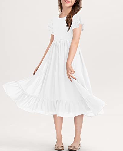 MITILLY Girls Elegant Lace Flower Crew Neck Ruffle Chiffon A-Line Flowy Birthday Party Midi Dress 6
