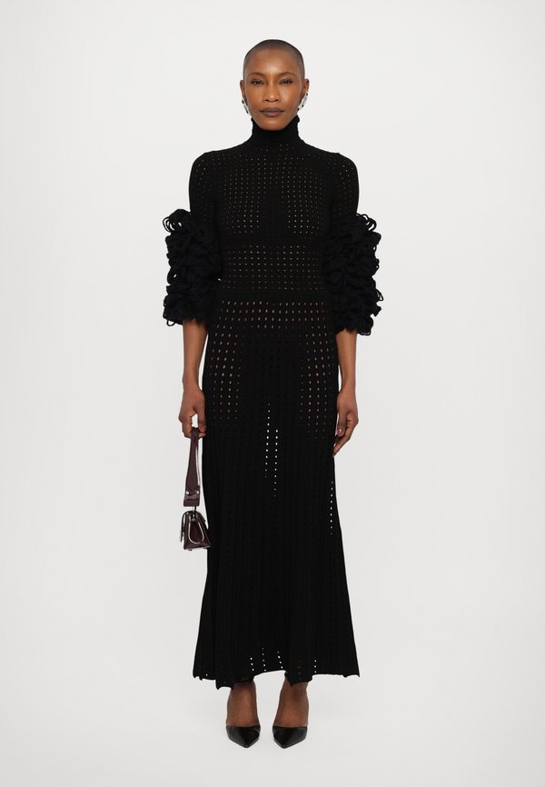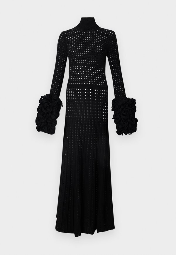 HOT ! PERFORATED MAXI TURTLE NECK DRESS WITH EXAGGERATED THREADED CUFFS - Maxi dress