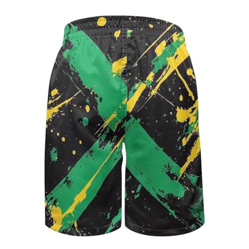 HOT ! Jamaica Swim Trunks for Men,Jamaica Shorts,Jamaican Flag Pants,Jamaican Outfits,Trunk Beach Shorts,Chic Jamaica Flag Print Black XX-Large