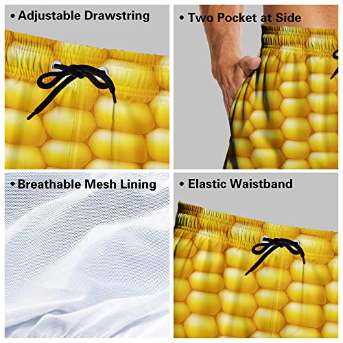 Men's Swim Trunks Corn Quick Dry Beach Shorts with Pockets Swimwear Bathing Suits Long Board Shorts White 5