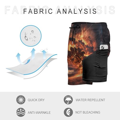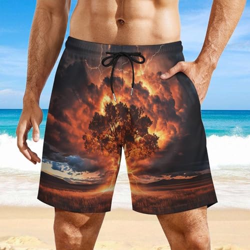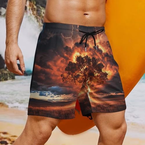 HOT ! Tree with Thunder Strikes Mens Swim Trunks with Quick-Drying Lining Beach Shorts for Outdoor Sports