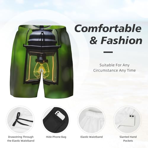HOT ! Firefly and Lantern Men's Soft Double Swim Shorts, Lounge Swiming Shorts Pants Breathable Summer