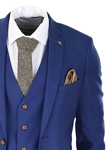 Mens Royal Blue 3 Piece Suit Brown Trim Classic Birdseye Vintage Wedding Grooms 3