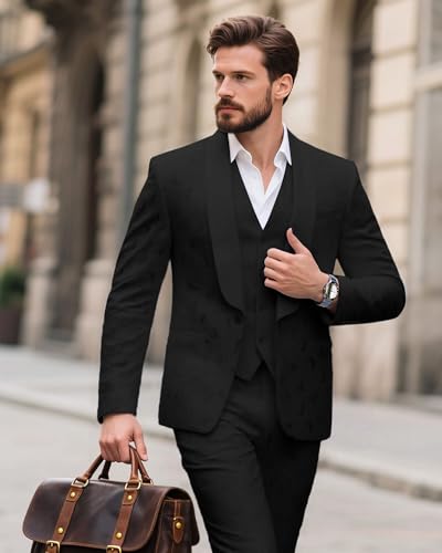 • Command Attention in Timeless Elegance: Make a sophisticated statement at your next wedding, prom, or gala with this exquisitely patterned jacquard tuxedo suit set. Includes jacket, vest, and trousers