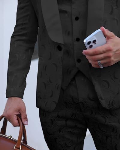Wemaliyzd Men's 3 Pieces Wedding Suit Slim Fit Jacquard Blazer Vest Pants 3