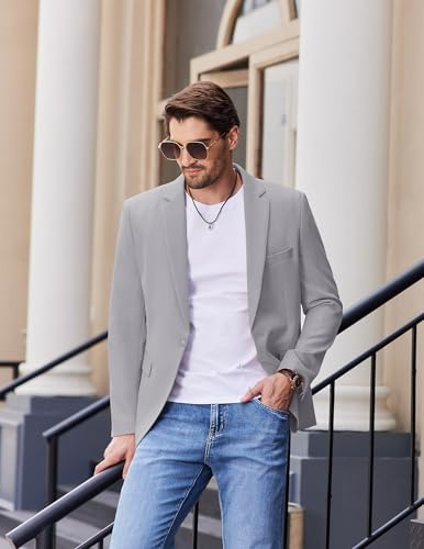 HOT ! COOFANDY Mens Casual Blazer Slim Fit Suit Jacket Grey One Button Sport Coats & Blazers, XX-Large