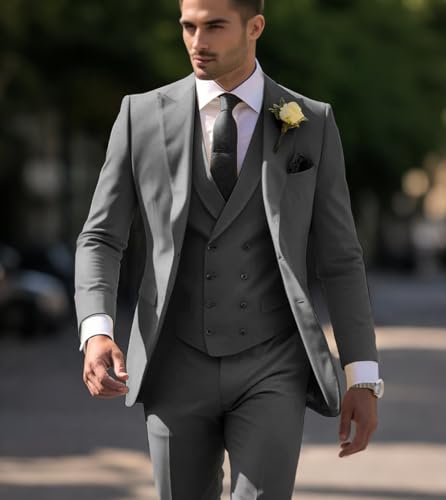 Men's 3 Piece Suits Double Breasted Suits for Men Mens Tuxedo Suit Set Regular Fit Mens Suit for Wedding Prom Homecoming 3