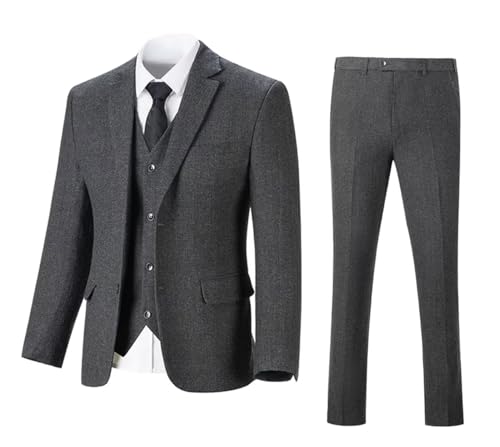 More information about Retro Mens 3 Piece Suit Tweed Herringbone Slim Fit Suits Groomsmen Brown Tuxedos Set Prom Jacket Blazer Vest Pants for Men