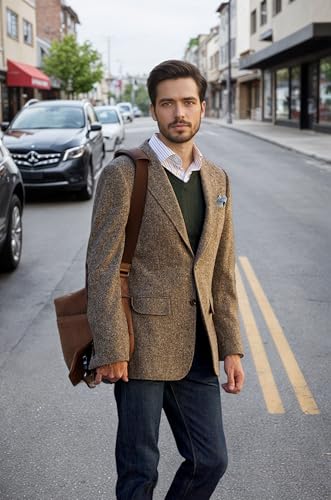 VENNYNG Men's Elbow Patch Mens Blazer Slim Fit Sport Coat Two Button Suit Jackets Tweed 1