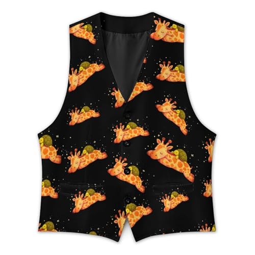 Siraffe Sleeping with Turtle Suit Vest for Men Waistcoat Dressy V Neck Button Down Sleeveless Business Jacket Coat 6