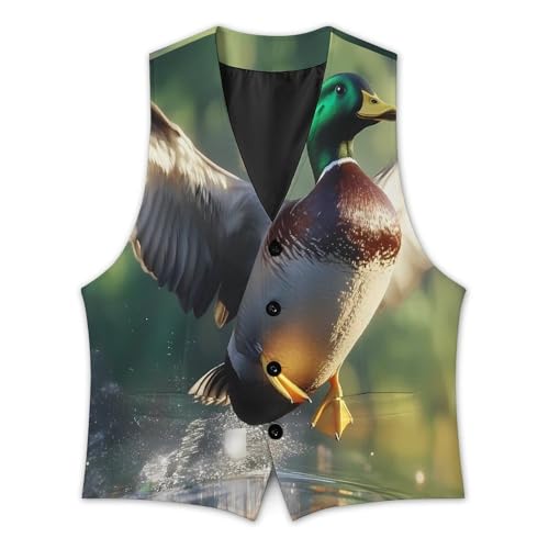Funny Mallard Duck Suit Vest for Men Waistcoat Dressy V Neck Button Down Sleeveless Business Jacket Coat 1
