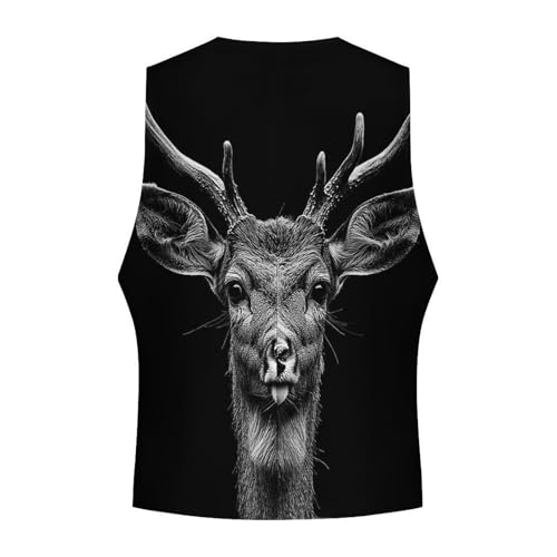 Close Up of Deer Head Men's Suit Vest Slim Fit V-Ncek Waistcoat Business Casual Vest 1