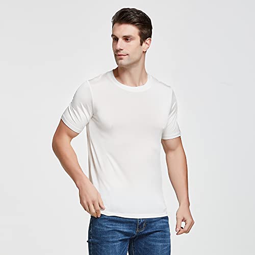 Viamulion Mens Silk Knitted T Shirt 100% Pure Mulberry Silk Sleep T Shirt Soft Cool Performance Crew Neck Casual Undershirt 6
