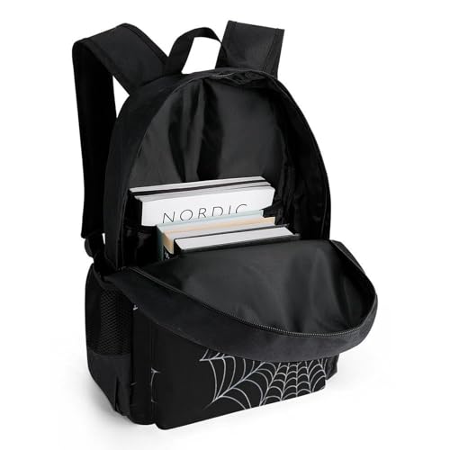 Men Women Polyester Halloween Spiders Web Black Daypack Backpack Large Capacity Carry On Bag With Smooth Zippers for Hiking Picnic Walking Cycling 6
