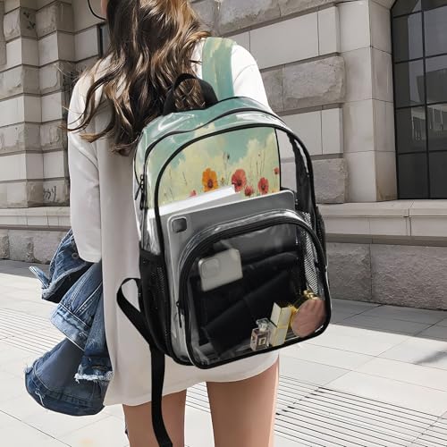 HOT ! Wild Flowers Oil Painting Clear Backpack - Stadium Approved Large 15.7-inch Waterproof Transparent Bag for Sports, Concerts, Work, Travel#237