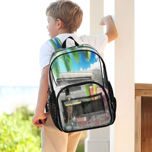 HOT ! Sea Beach Palm Tree Clear Backpack - Stadium Approved Large 15.7-inch Waterproof Transparent Bag for Sports, Concerts, Work, Travel#163
